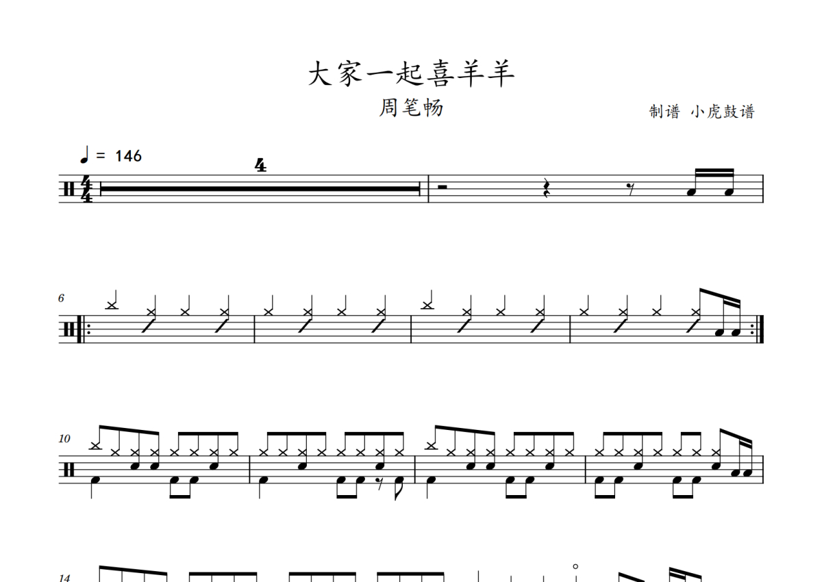 周笔畅《大家一起喜羊羊》鼓谱 - 架子鼓谱