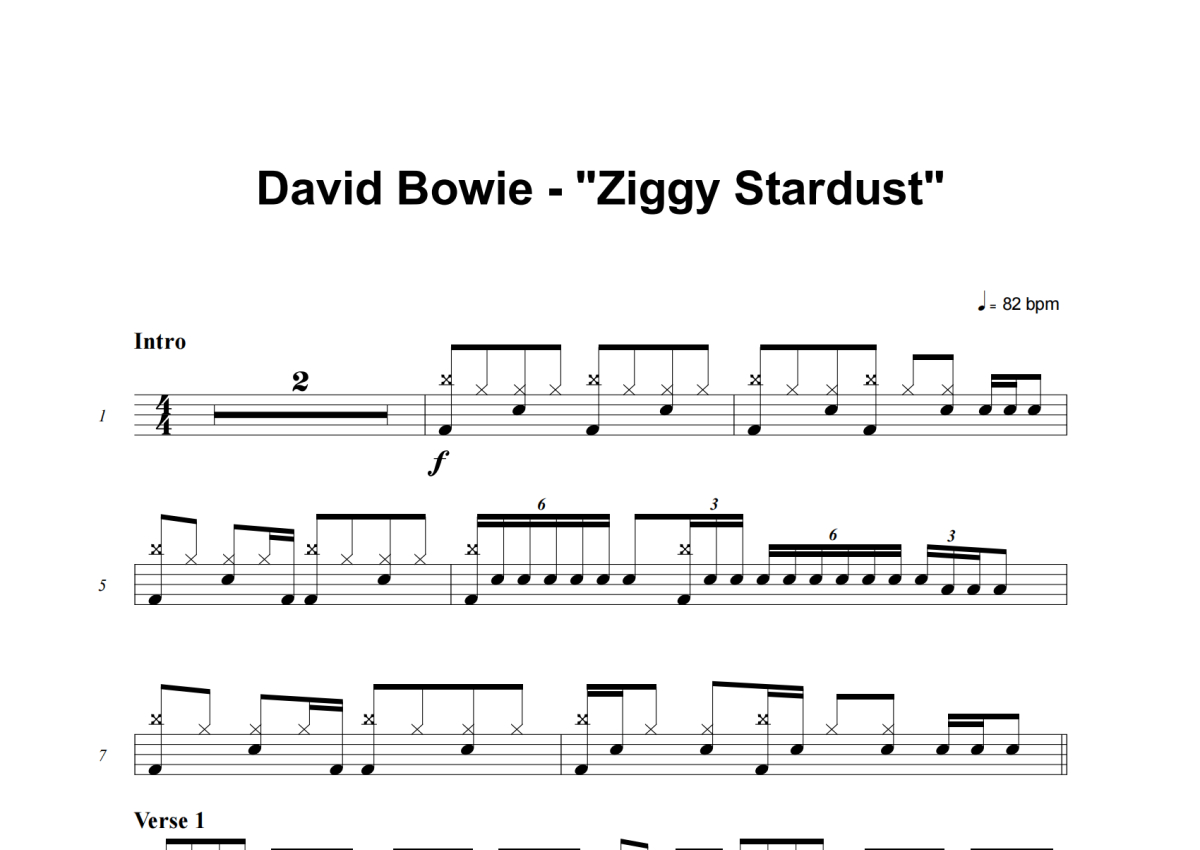 David Bowie《Ziggy Stardust》鼓谱 - 架子鼓谱