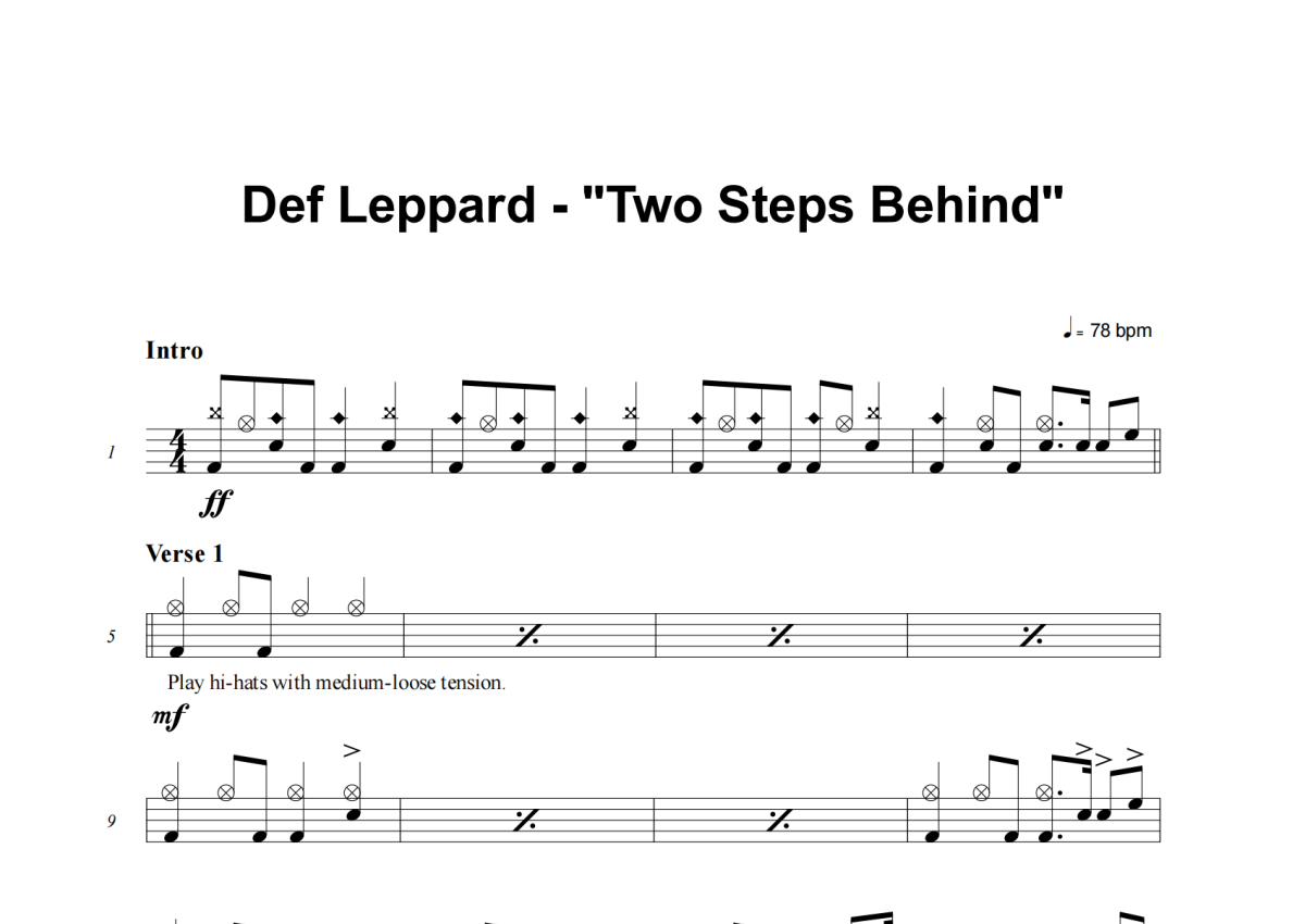 Def Leppard《Two Steps Behind》鼓谱 - 架子鼓谱