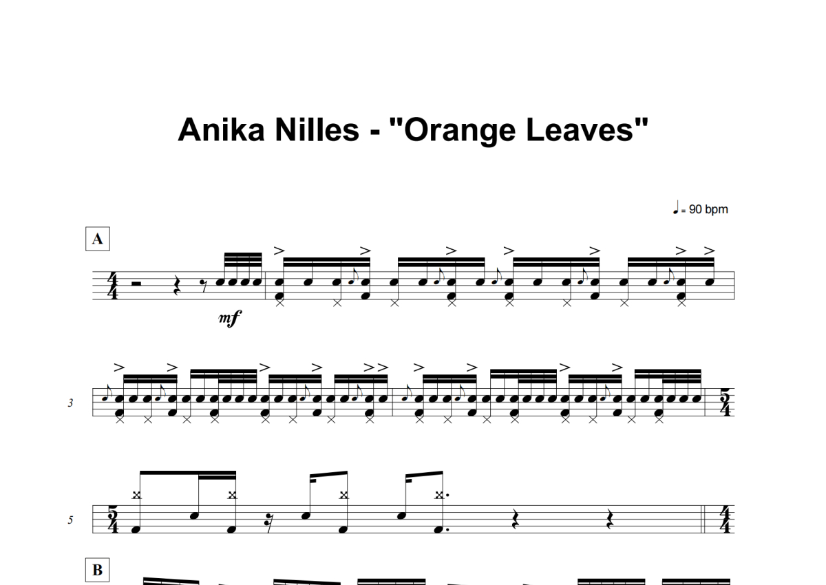 Anika Nilles《Orange Leaves》鼓谱 - 架子鼓谱