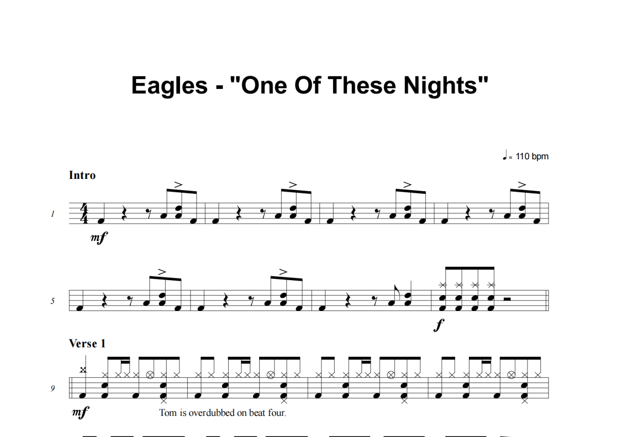 Eagles《One Of These Nights》鼓谱 - 架子鼓谱
