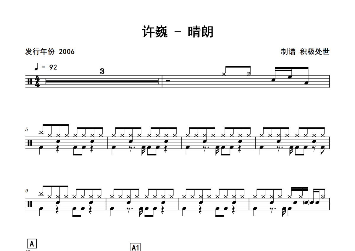 许巍《晴朗》鼓谱 - 架子鼓谱