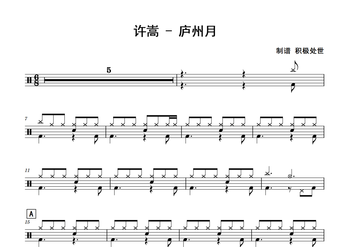 许嵩《庐州月》鼓谱 - 架子鼓谱