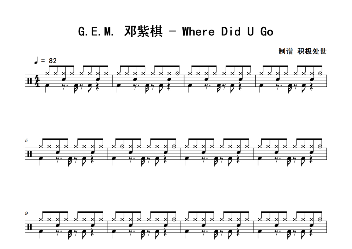 G.E.M._邓紫棋《Where_Did_U_Go》鼓谱 - 架子鼓谱