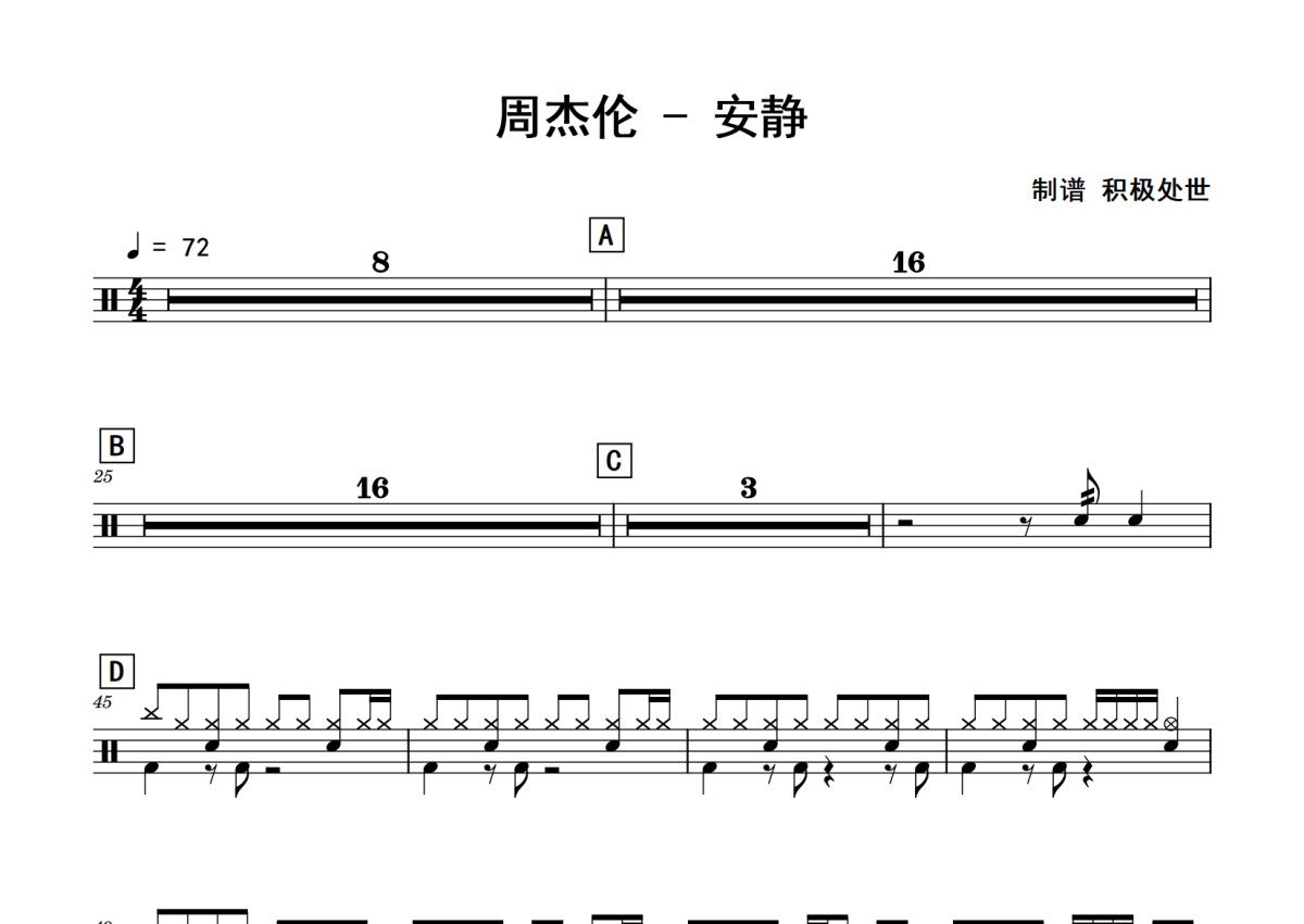 周杰伦《安静》鼓谱 - 架子鼓谱