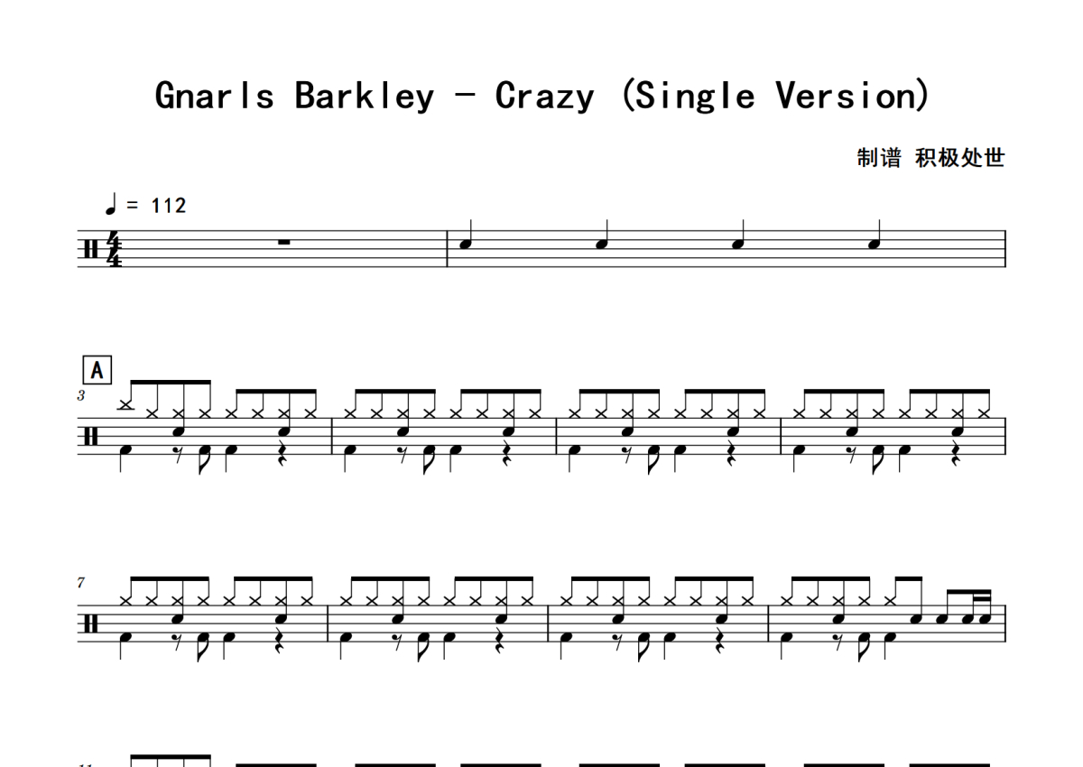 Gnarls_Barkley《Crazy_(Single_Version)》鼓谱 - 架子鼓谱