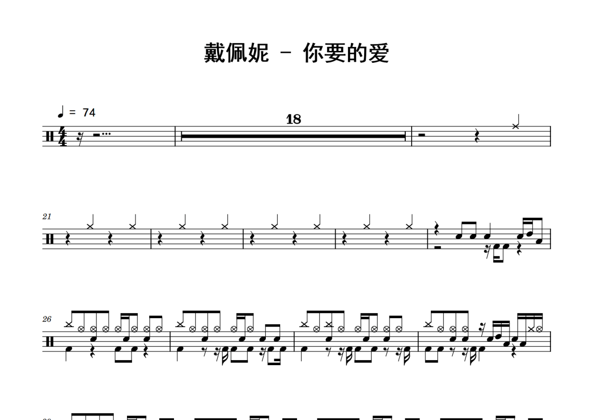 戴佩妮《你要的爱》鼓谱 - 架子鼓谱