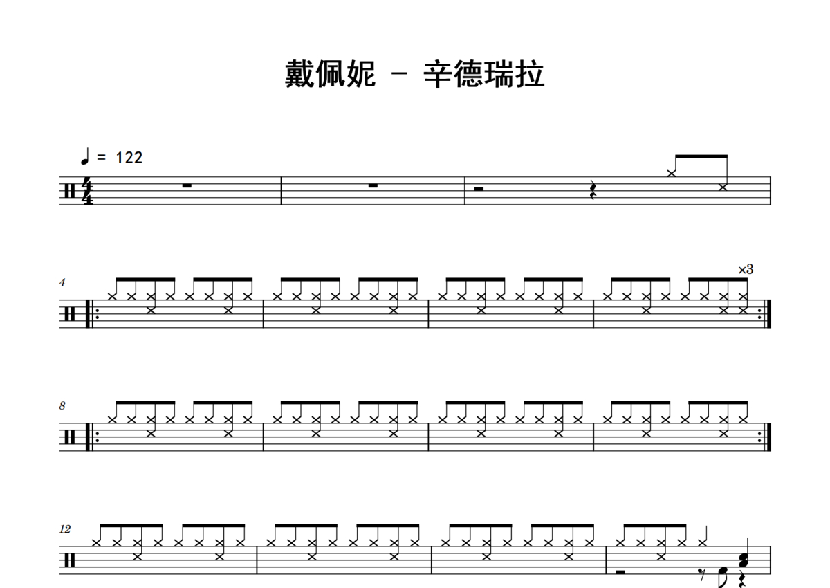 《辛德瑞拉》是戴佩妮演唱的一首歌曲,拍号为4/4拍,歌曲速度为每分钟122拍,这份鼓谱共有三张高清图谱,图谱由 @老虎不说谎 编配上传,图谱使用五线谱编配,使用这份辛德瑞拉架子鼓谱,你将能够轻松地敲打出这首戴佩妮的辛德瑞拉,快来尝试吧。