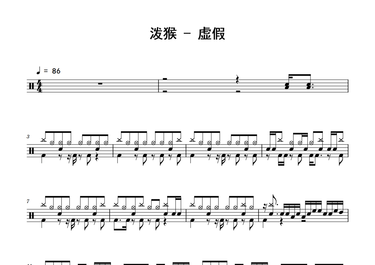 泼猴《虚假》鼓谱 - 架子鼓谱