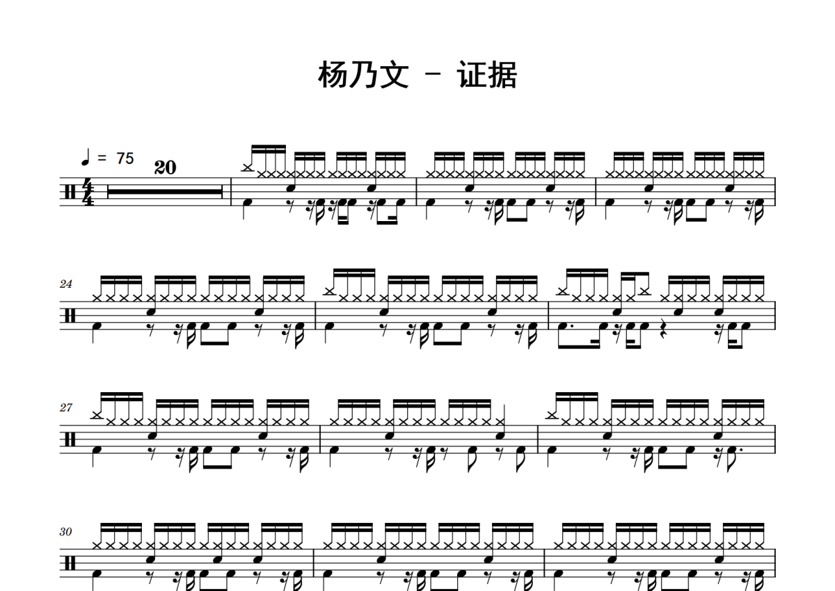 杨乃文《证据》鼓谱 - 架子鼓谱