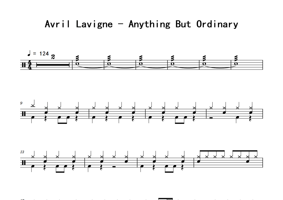 Avril Lavigne《Anything But Ordinary》鼓谱 - 架子鼓谱