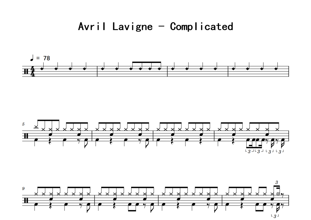 Avril Lavigne《Complicated》鼓谱 - 架子鼓谱