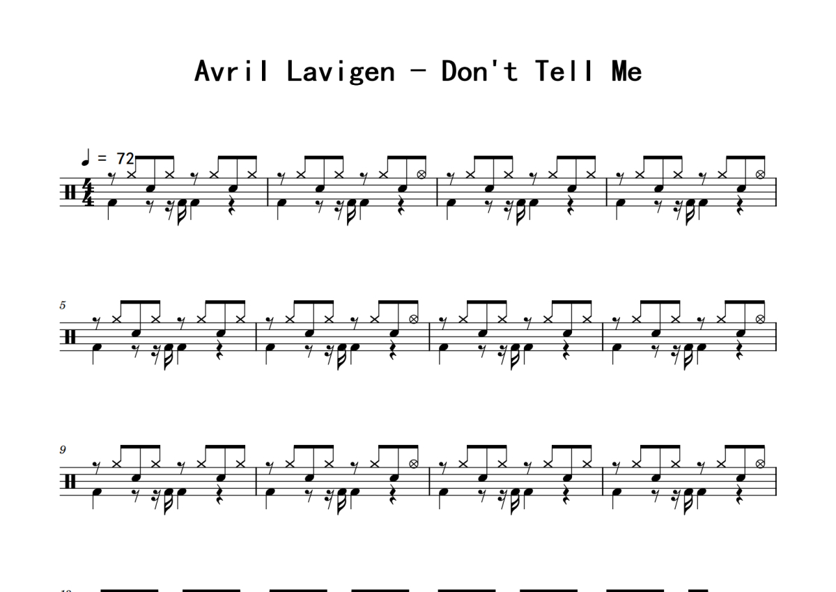 Avril Lavigen《Don't Tell Me》鼓谱 - 架子鼓谱