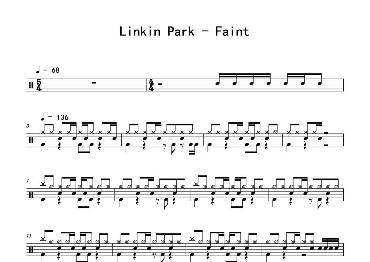 Linkin Park(林肯公园)《Faint》鼓谱 - 架子鼓谱