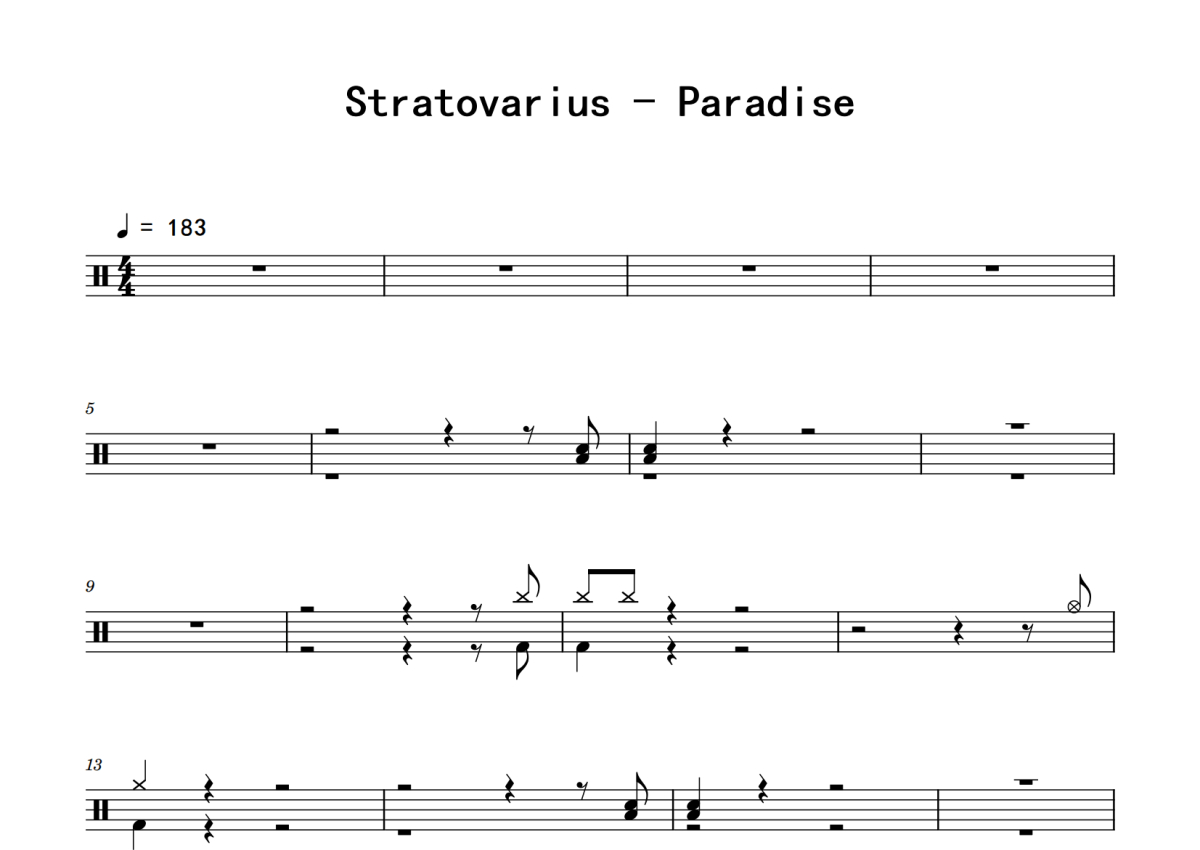 Stratovarius《Paradise》鼓谱 - 架子鼓谱