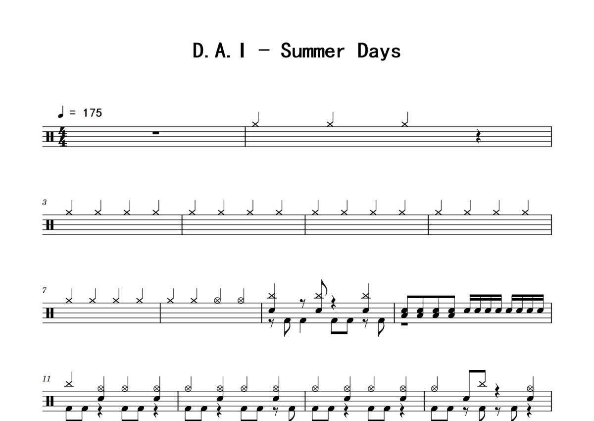 D.A.I《Summer Days》鼓谱 - 架子鼓谱