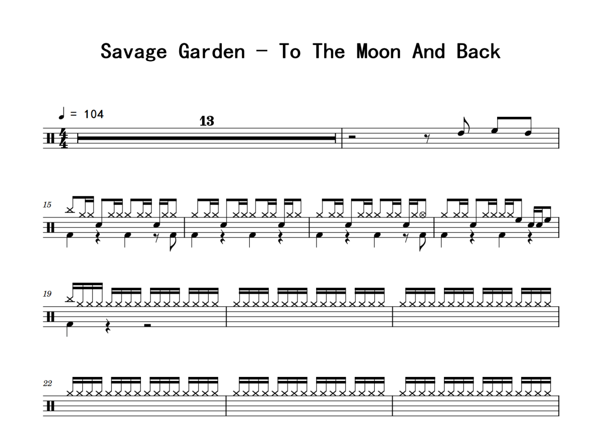 Savage Garden《To The Moon And Back》鼓谱 - 架子鼓谱