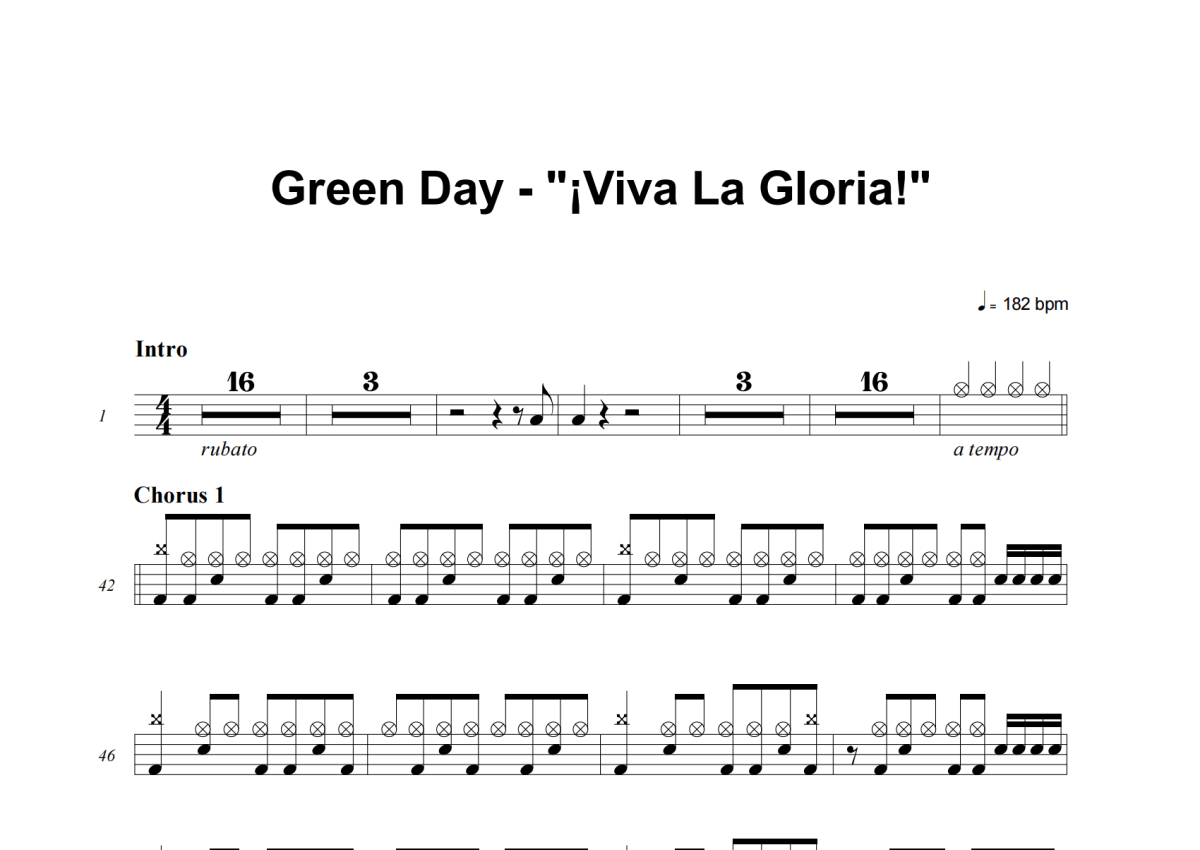 Green Day《¡Viva La Gloria!》鼓谱 - 架子鼓谱