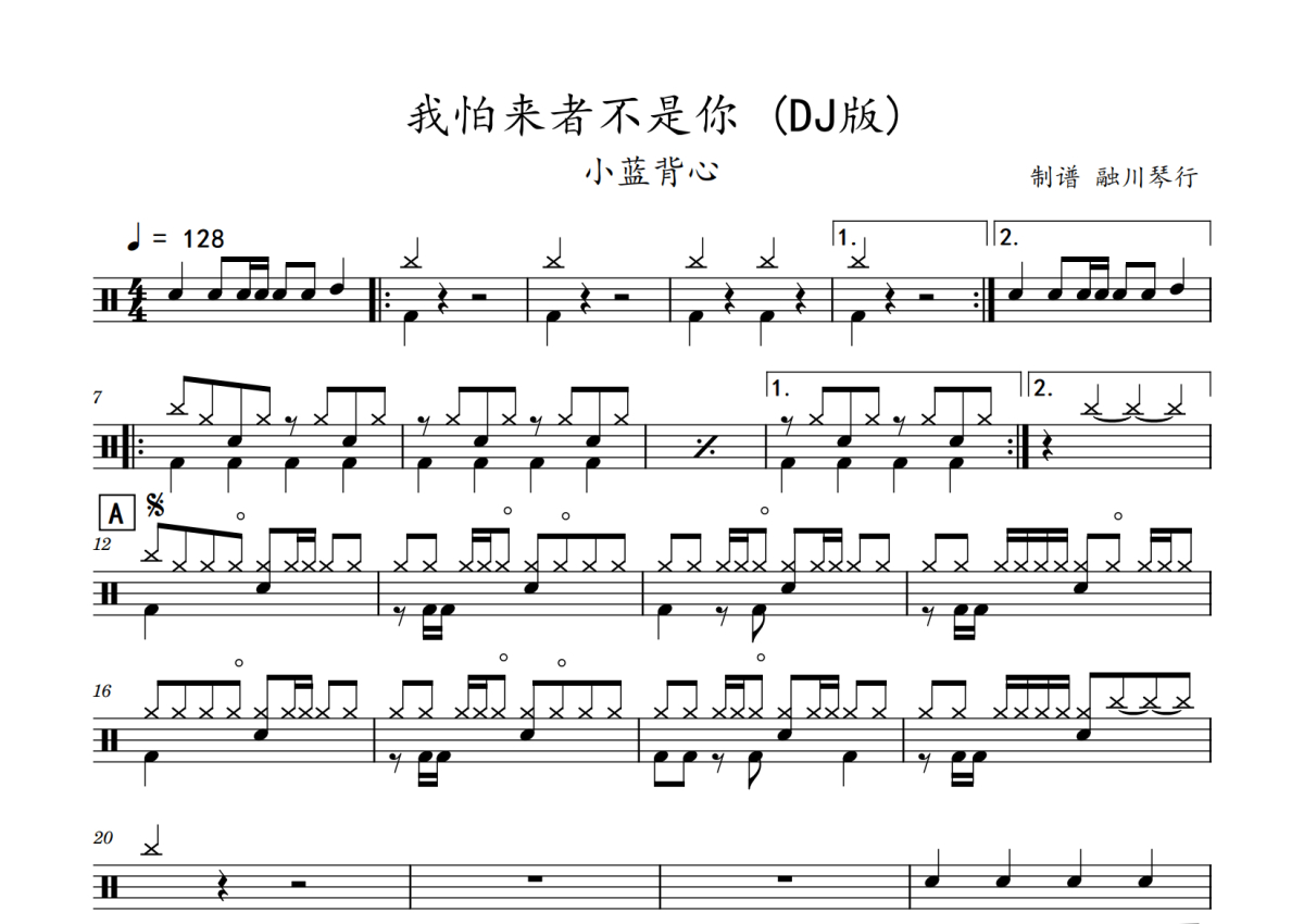 小蓝背心《我怕来者不是你》鼓谱 - 架子鼓谱 - DJ版
