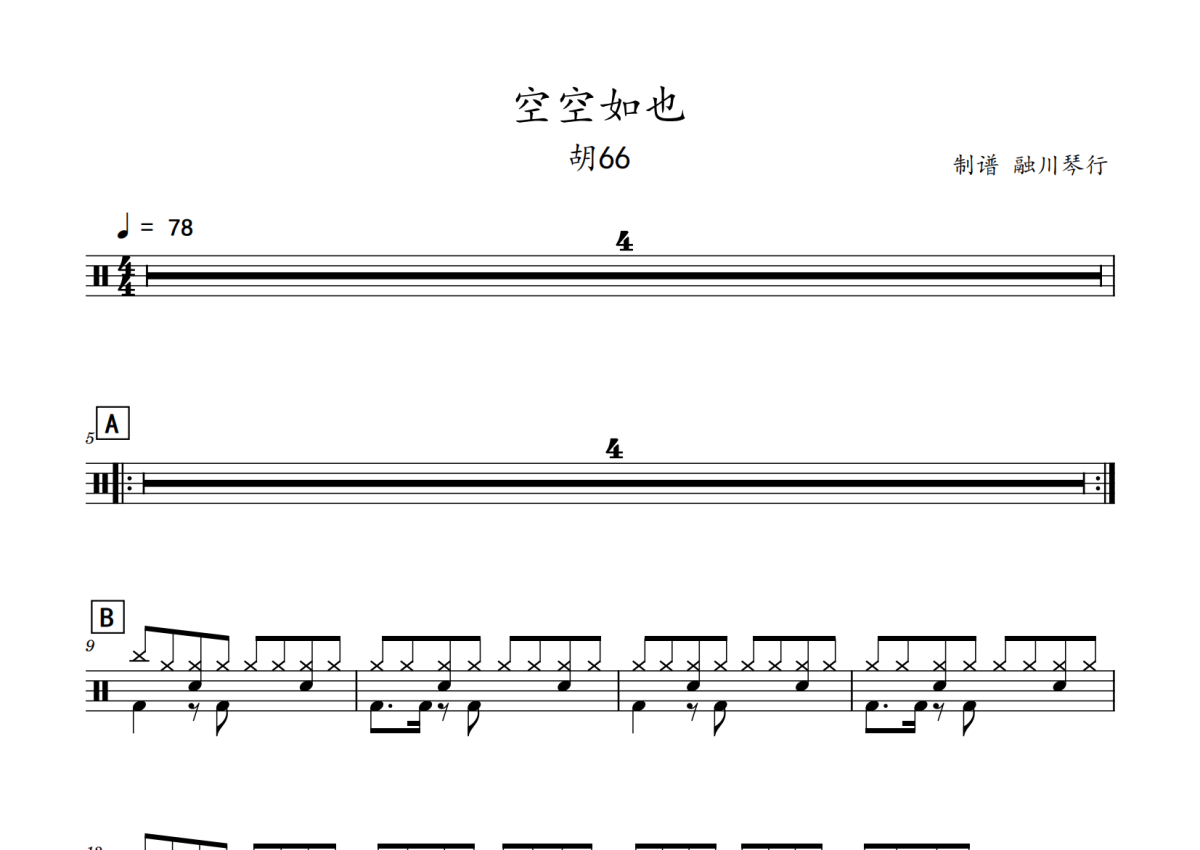 胡66《空空如也》鼓谱 - 架子鼓谱