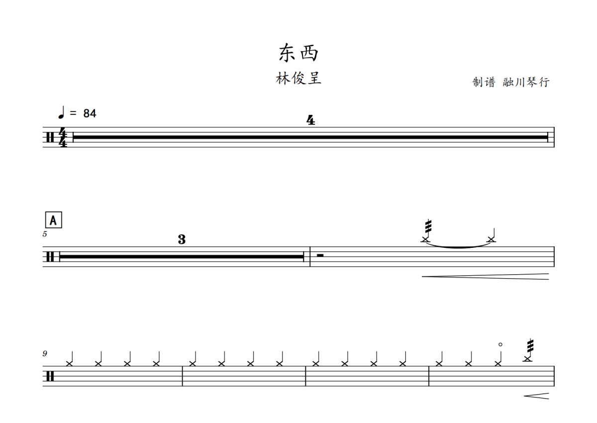 林俊呈《东西》鼓谱 - 架子鼓谱
