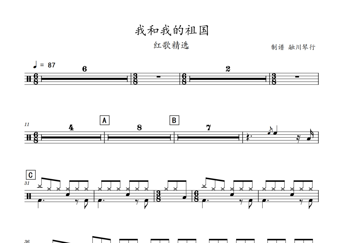 红歌精选《我和我的祖国》鼓谱 - 架子鼓谱