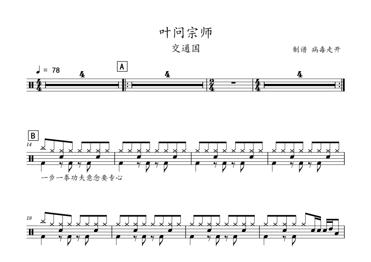交通国《叶问宗师》鼓谱 - 架子鼓谱 - 初级