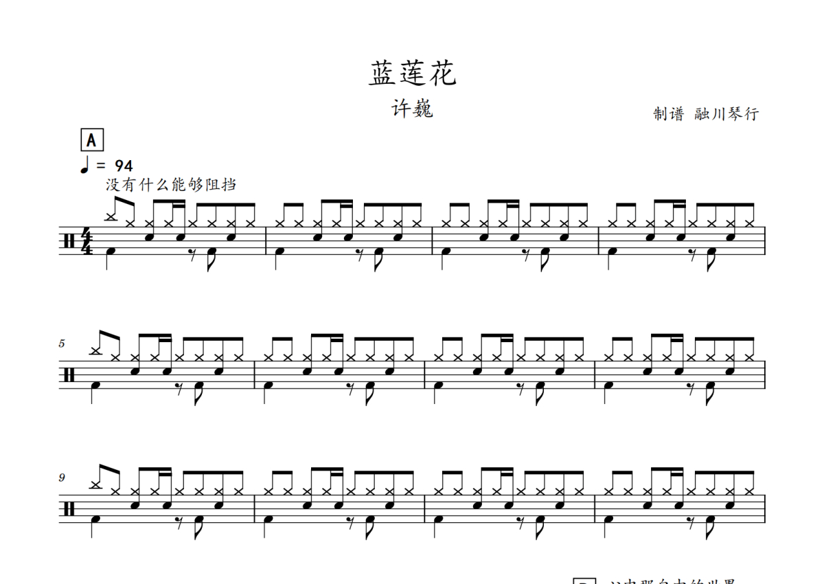 许巍《蓝莲花》鼓谱 - 架子鼓谱