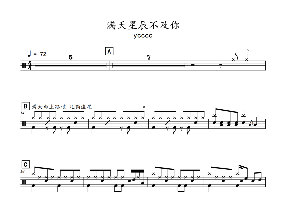 ycccc《满天星辰不及你》鼓谱 - 架子鼓谱
