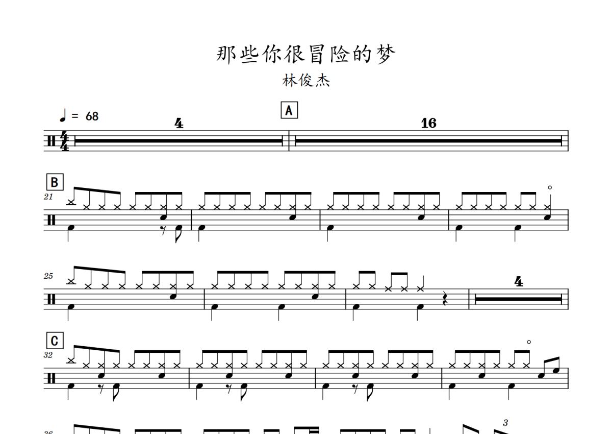 林俊杰《那些你很冒险的梦》鼓谱 - 架子鼓谱