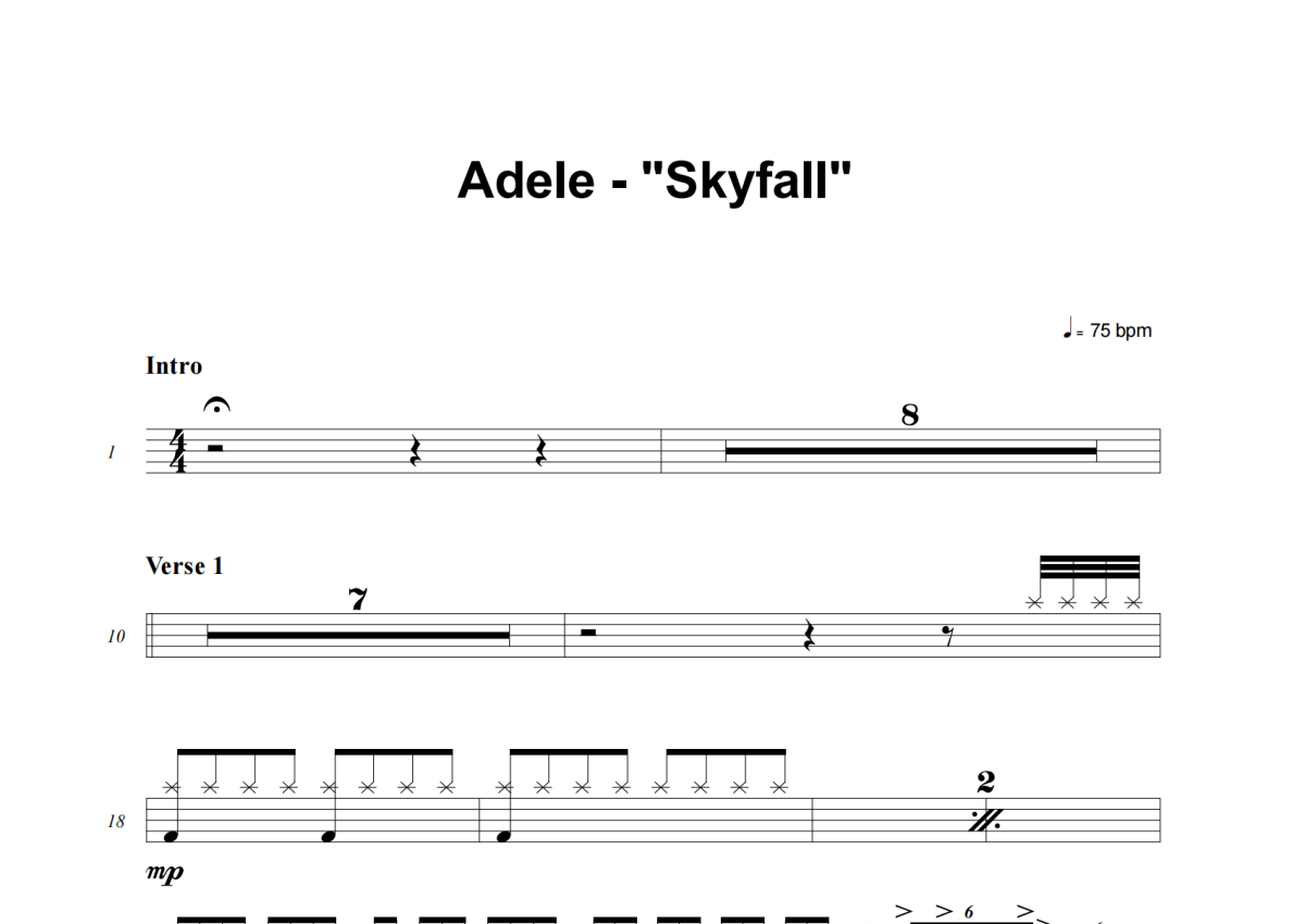 Adele《Skyfall》鼓谱 - 架子鼓谱