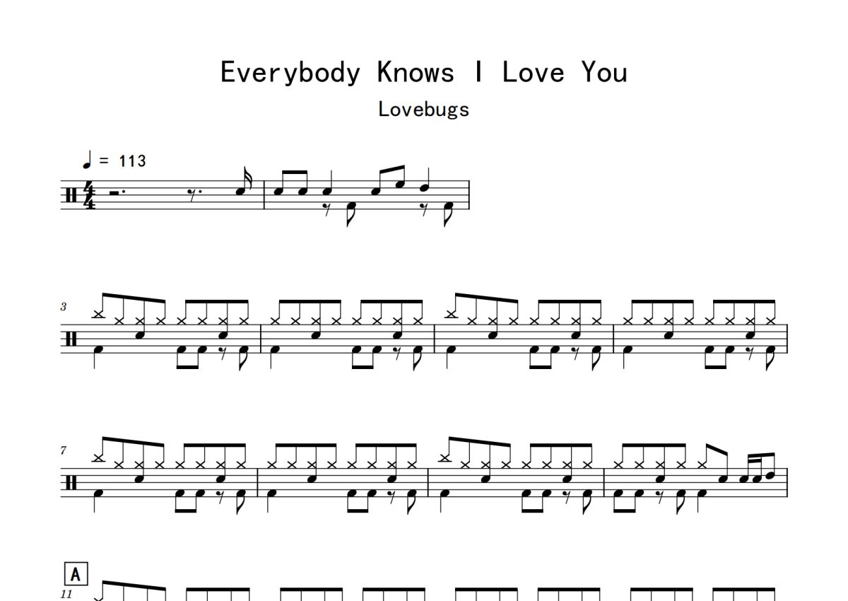 Lovebugs《Everybody_Knows_I_Love_You》鼓谱 - 架子鼓谱
