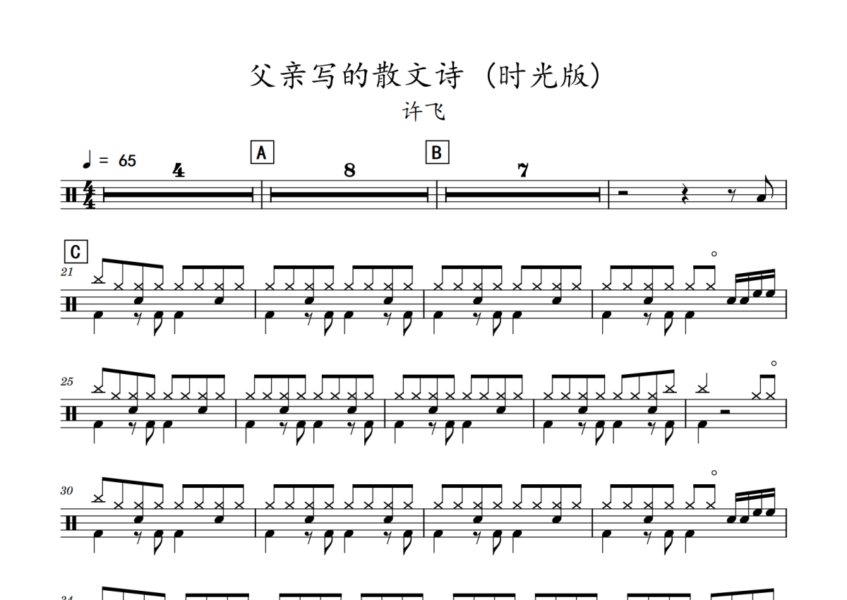 许飞《父亲写的散文诗》鼓谱 - 架子鼓谱 - 时光版