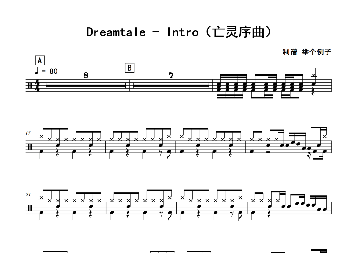 Dreamtale《Intro(亡灵序曲)》鼓谱 - 架子鼓谱