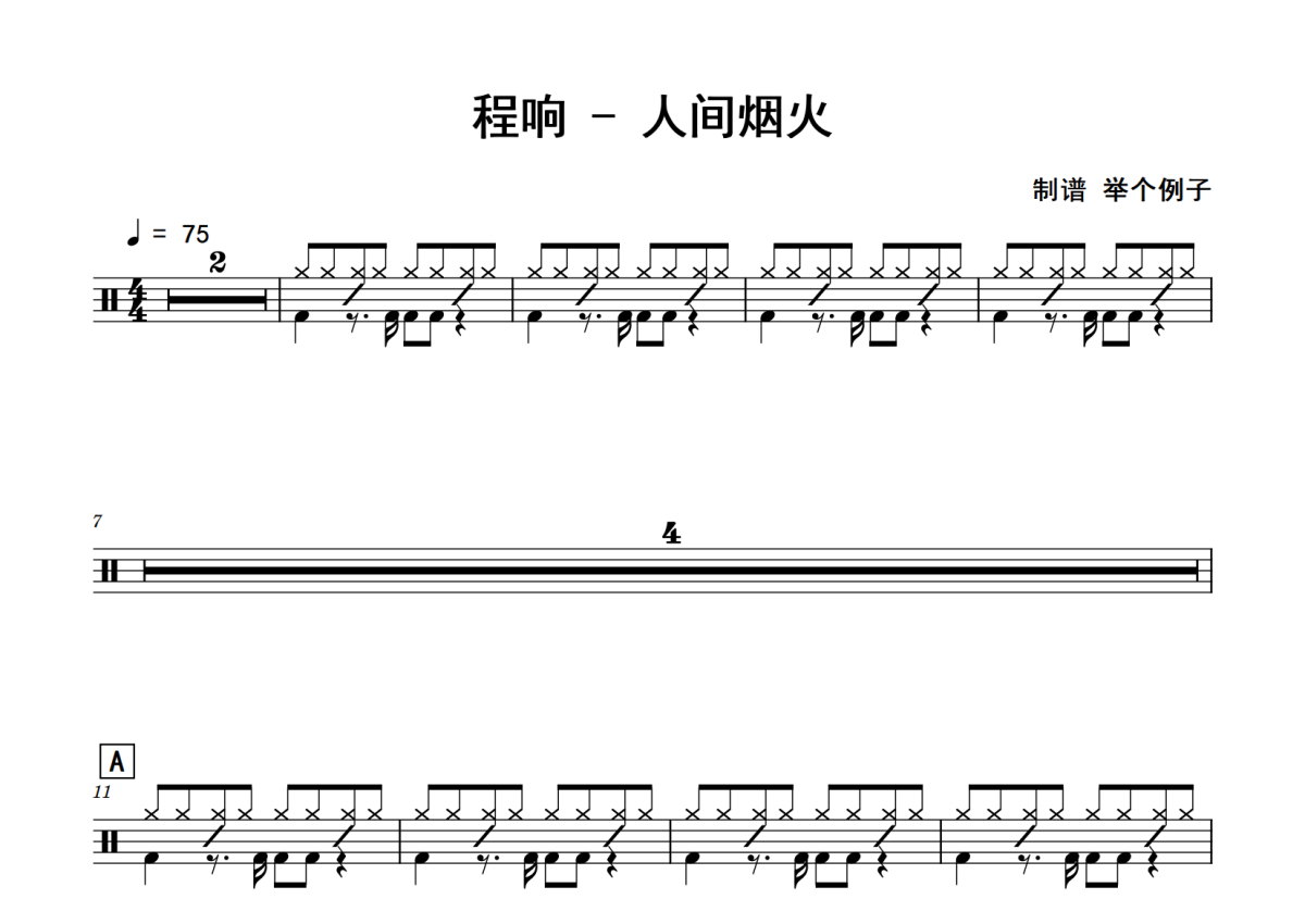 程响《人间烟火》鼓谱 - 架子鼓谱