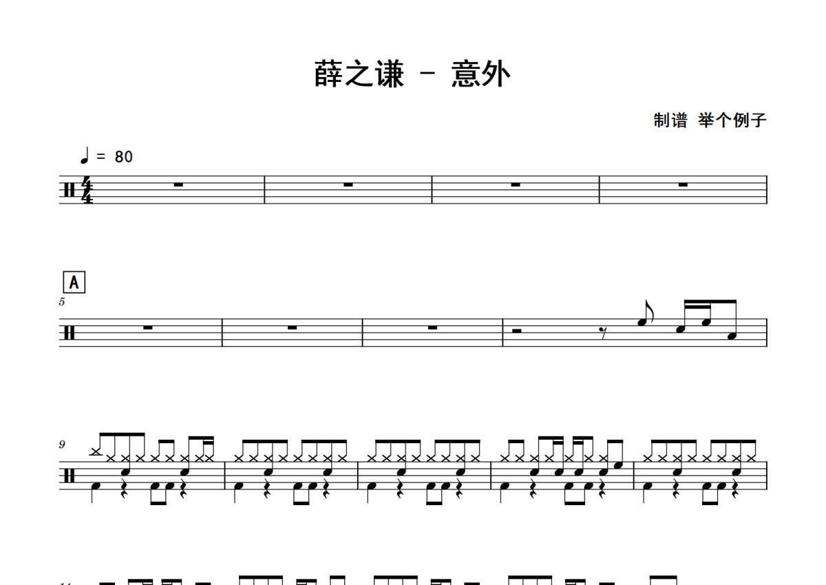 薛之谦《意外》鼓谱 - 架子鼓谱