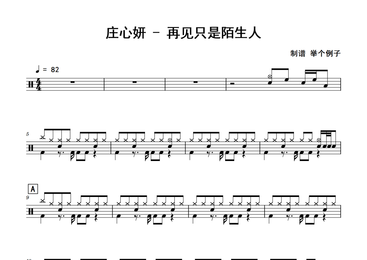 庄心妍《再见只是陌生人》鼓谱 - 架子鼓谱