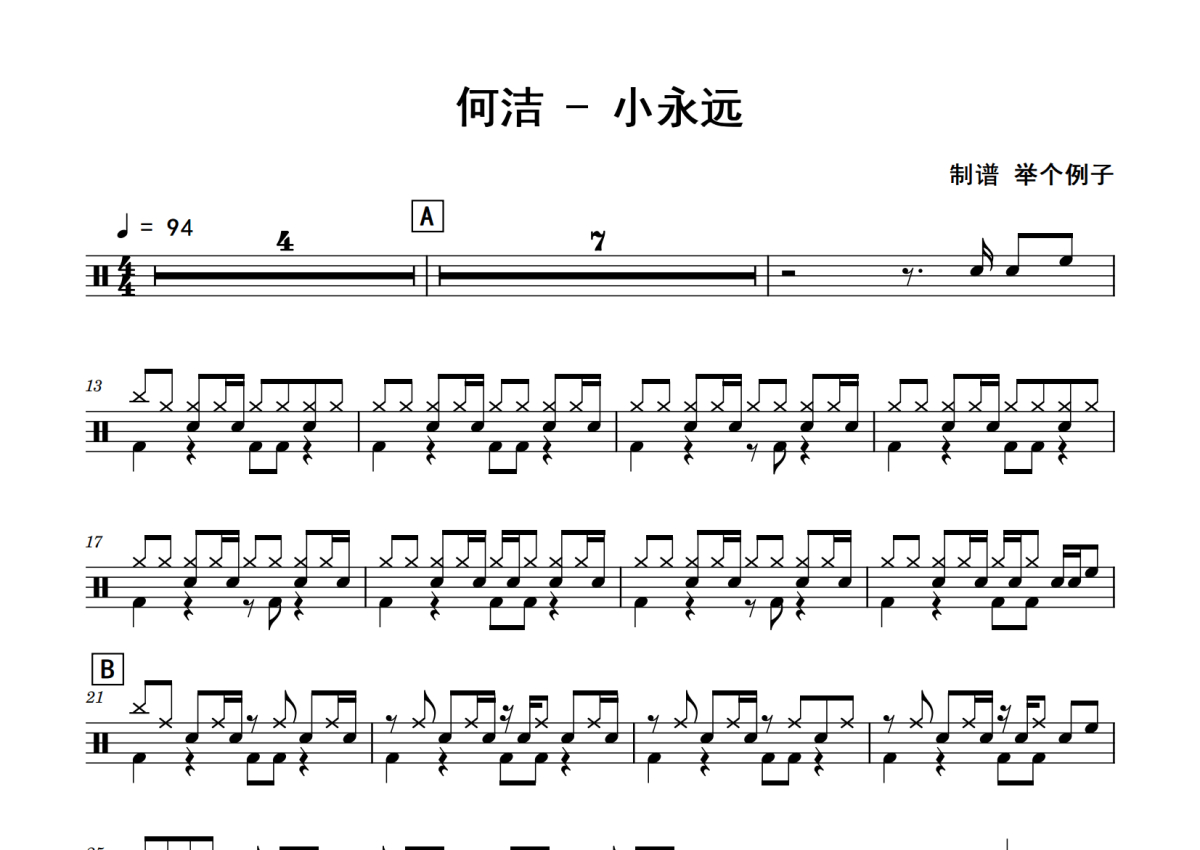 何洁《小永远》鼓谱 - 架子鼓谱