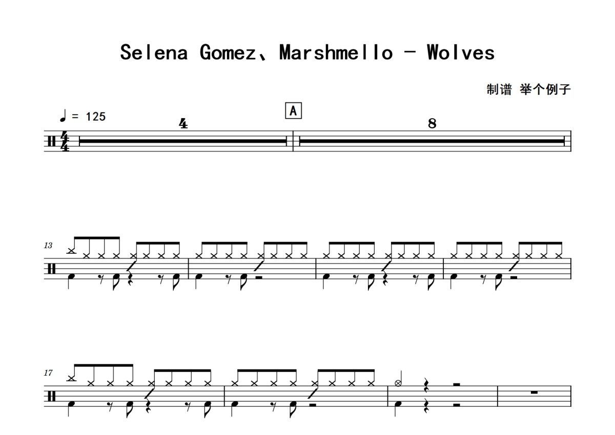 Selena_Gomez、Marshmello《Wolves》鼓谱 - 架子鼓谱