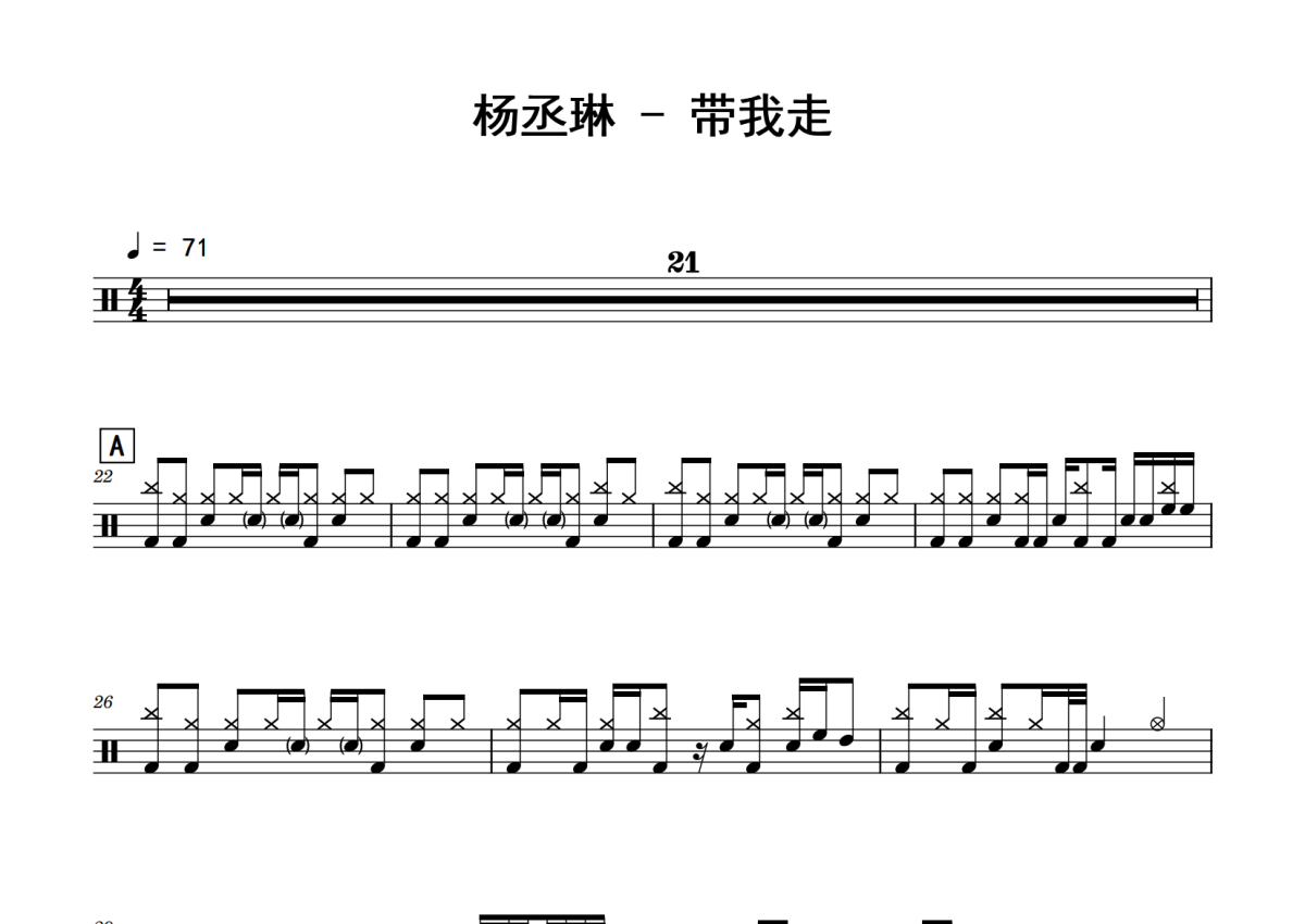 杨丞琳《带我走》鼓谱 - 架子鼓谱