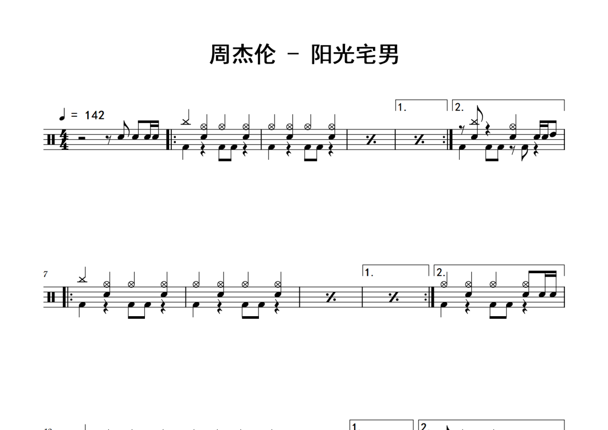 周杰伦《阳光宅男》鼓谱 - 架子鼓谱