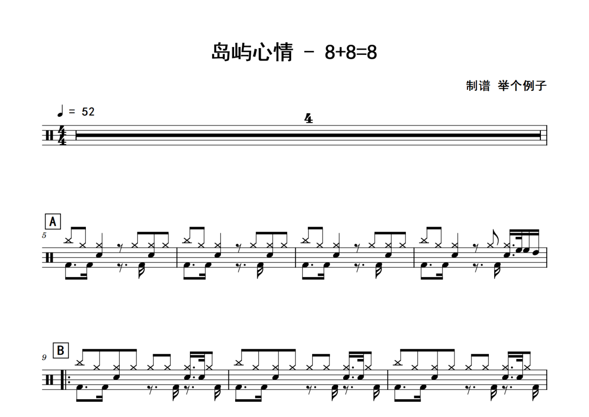 岛屿心情《8+8=8》鼓谱 - 架子鼓谱