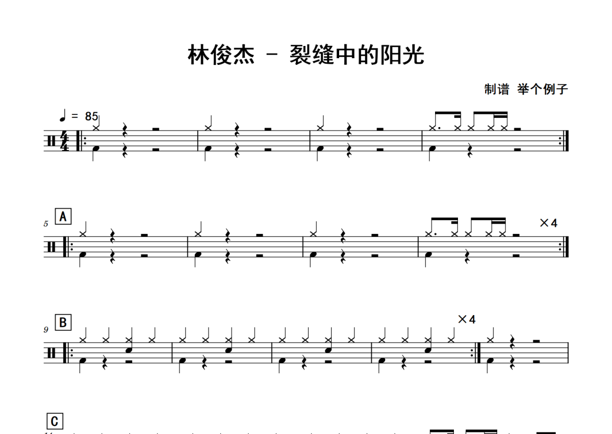 林俊杰《裂缝中的阳光》鼓谱 - 架子鼓谱