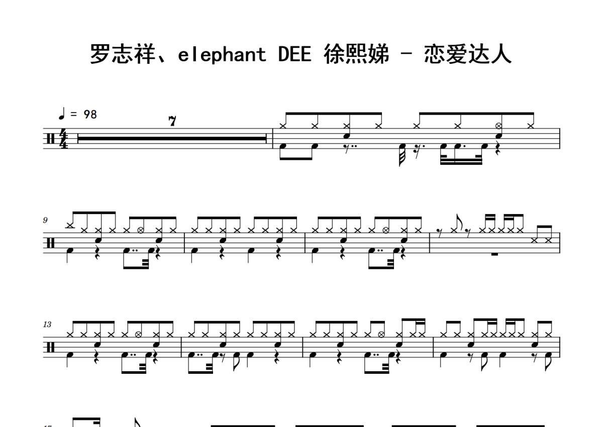 罗志祥、elephant DEE 徐熙娣《恋爱达人》鼓谱 - 架子鼓谱