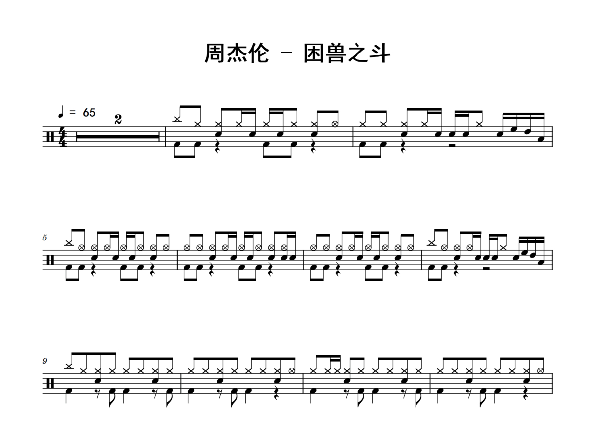 周杰伦《困兽之斗》鼓谱 - 架子鼓谱