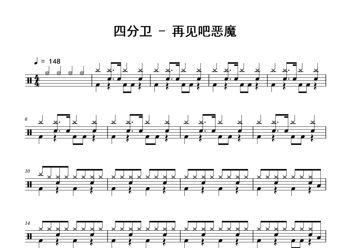 四分卫《再见吧恶魔》鼓谱 - 架子鼓谱