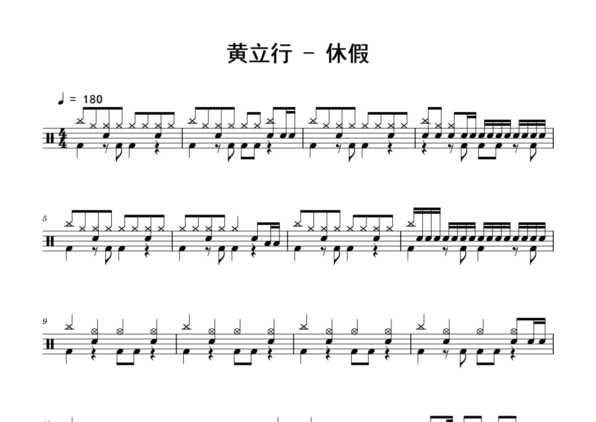 《休假》是黄立行演唱的一首歌曲,拍号为4/4拍,歌曲速度为每分钟180拍,这份鼓谱共有五张高清图谱,图谱由 @老虎不说谎 编配上传,图谱使用五线谱编配,使用这份休假架子鼓谱,你将能够轻松地敲打出这首黄立行的休假,快来尝试吧。