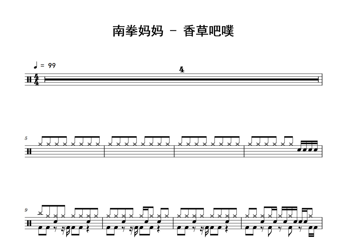 南拳妈妈《香草吧噗》鼓谱 - 架子鼓谱