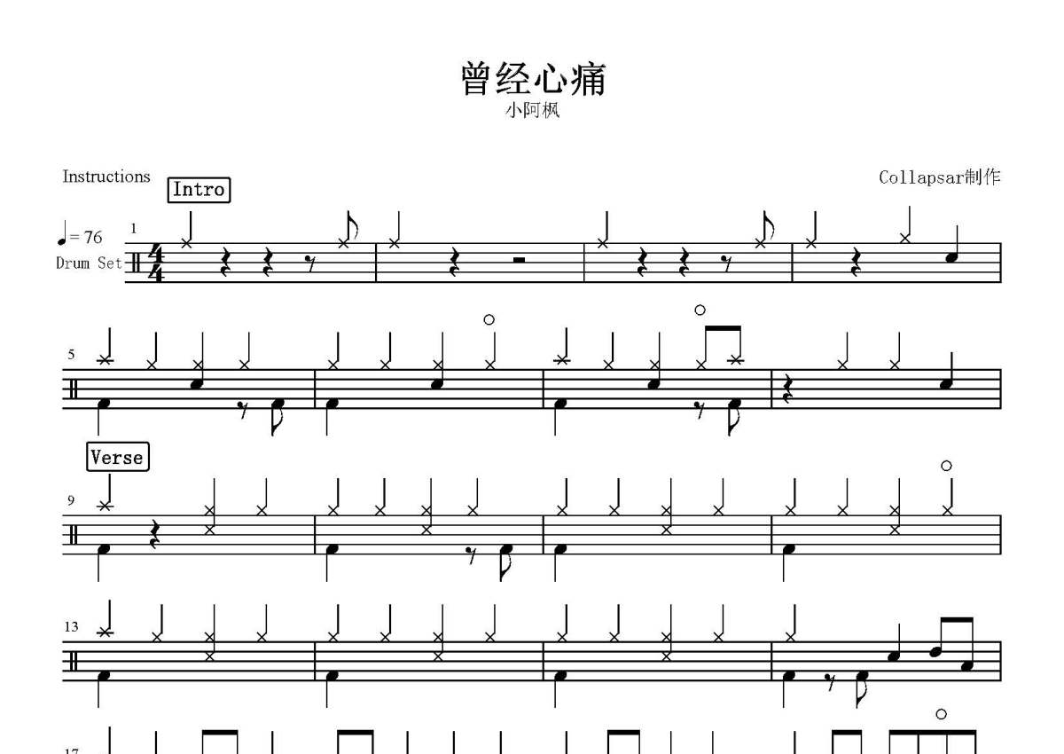 小阿枫《曾经心痛》鼓谱 - 架子鼓谱
