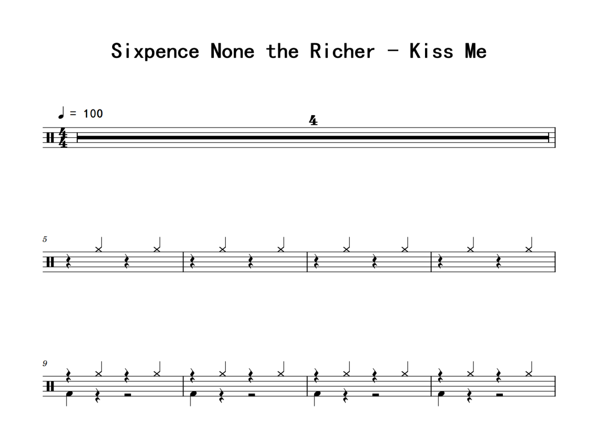 Sixpence None The Richer《Kiss Me》鼓谱 - 架子鼓谱